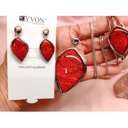 Souprava firmy Yvon je velice kvalitní a má protialergický pokov. Přívěšek , náušnice i náramek jsou z leštěné pryskyřice, krásně se leskne , velice kvalitní provedení. Nadčasový design. Lze zakoupit samostatně. Náušnice jsou lehké na puzetku, náhrdelník je na dlouhém řetízku 70 cm + 7 cm prodlužka, náramek je navlečený na pružném silonu.