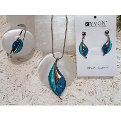 Souprava firmy Yvon je velice kvalitní a má protialergický pokov. Přívěšek je z pryskyřice a tudíž velice lehký.  Nadčasový design. Lze zakoupit samostatně. Náučnice jsou lehké na puzetku, náhrdelník je na dlouhém řetízku 74 cm + 7 cm prodlužka, náramek je navlečený na pružném silonu.