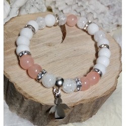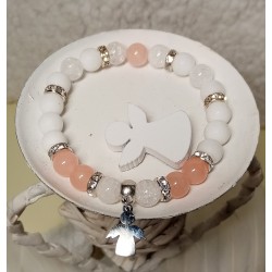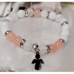 Náramek je vytvořen z minerálních kamenů jadeitu a praskaného křišťálu. Lze zakoupit ve třech velikostech. Kovové komponenty- kuličky velikost 4 mm a středová adjusta se srdíčkem jsou z růžové chirurgické nerez oceli.