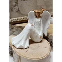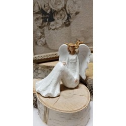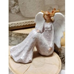 Anděl je vyrobený z polyresinu. Má neobvyklou sedící  pozici,  šaty mají třpytivý povrch, křídla jsou čistě bílá.