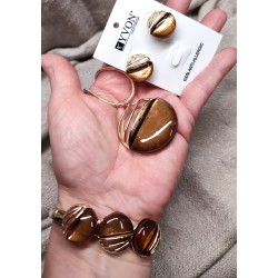 Souprava firmy Yvon je velice kvalitní a má protialergický pokov. Přívěšek je z pryskyřice a tudíž velice lehký.  Nadčasový design. Lze zakoupit samostatně. Náušnice jsou lehké na puzetku, náhrdelník je na krátkem  řetízku 42 cm + 7 cm prodlužka, náramek je navlečený na pružném silonu.