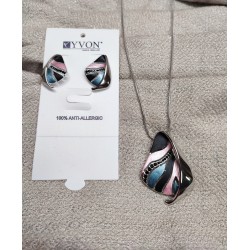 Souprava firmy Yvon je velice kvalitní a má protialergický pokov. Přívěšek je z pryskyřice a tudíž velice lehký.  Nadčasový design. Lze zakoupit samostatně. Náušnice jsou lehké na puzetku, náhrdelník je na krátkém  řetízku 42 cm + 7 cm prodlužka, náramek je navlečený na pružném silonu.