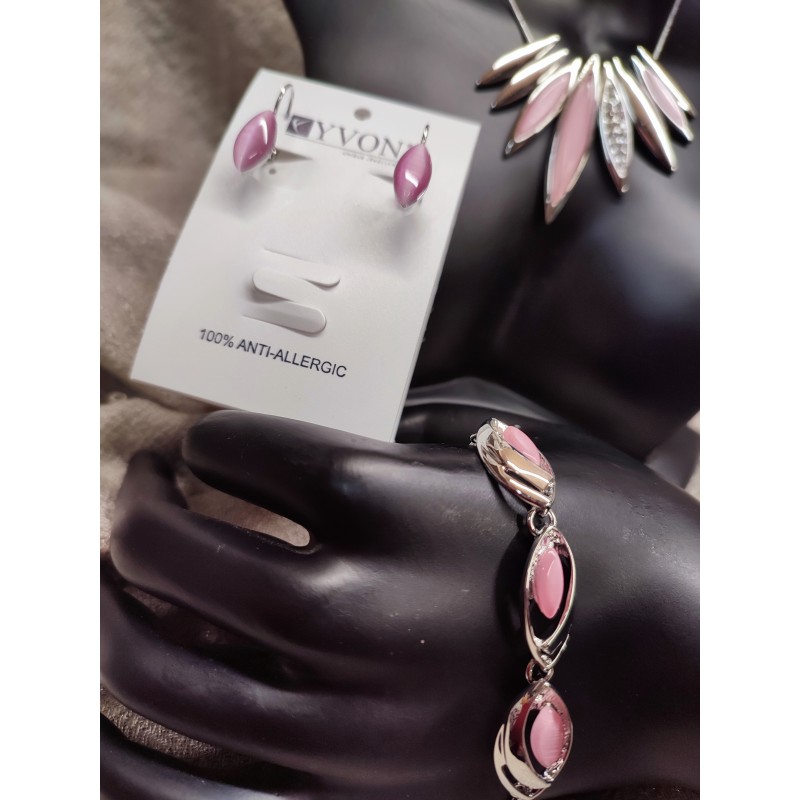 Souprava firmy Yvon je velice kvalitní a má protialergický pokov. Přívěšek je z pryskyřice a tudíž velice lehký.  Nadčasový design. Lze zakoupit samostatně. Náušnice jsou lehké na francouzské zapínaní tj. klapačku, náhrdelník je na krátkém  řetízku 42 cm + 7 cm prodlužka, náramek je se stahovacím tunýlkem, kterým vede řetízek. Je tudíž na jakoukoliv ruku. Krásně sedí a je jemný.