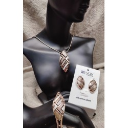 Souprava firmy Yvon je velice kvalitní a má protialergický pokov. Přívěšek je ze smaltu. Nadčasový design. Lze zakoupit samostatně. Náušnice jsou lehké na puzetku, náhrdelník je na krátkém řetízku 42 cm + 7 cm prodlužka. Řetízek je jemně narůžovělé zlato.Nádherný kousek.