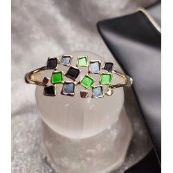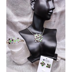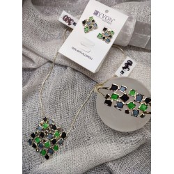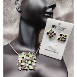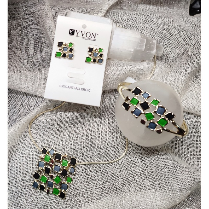 Souprava firmy Yvon je velice kvalitní a má protialergický pokov. Souprava je ze smaltu. Nadčasový design. Lze zakoupit samostatně. Náušnice jsou lehké na puzetku, náhrdelník je na krátkém řetízku 42 cm + 7 cm prodlužka, náramek je navlečený na pružném silonu. Souprava má zlatý pokov.