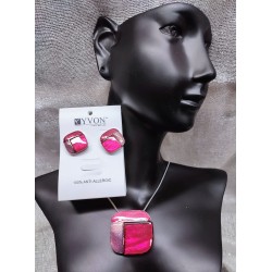 Souprava firmy Yvon je velice kvalitní a má protialergický pokov. Přívěšek je z pryskyřice a tudíž velice lehký. Nadčasový design. Lze zakoupit samostatně. Náušnice jsou lehké na puzetku, náhrdelník je na krátkém řetízku 42 cm + 7 cm prodlužka.Souprava je tvořena náhrdelníkem a náramkem.