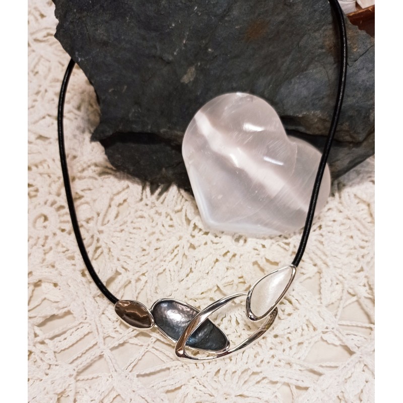 Náhrdelník je vyrobený z kvalitního bižuterního kovu, dovoz Francie. Jedná se o nadčasový kousek. Na kůži je prodlužka v délce 5 cm, kterou můžete korigovat hloubku náhrdelníku.