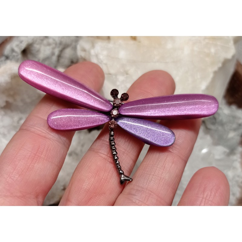 Brož je na klasické připnutí pomocí zavíracího špendlíku. Nádherný propracovaná práce . Nejdelší čás křídel je 7 cm. Od hlavičky k ocásku  3,5,cm.