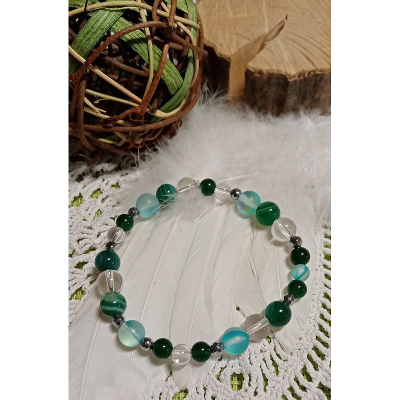 Minerální náramek achát , křišťál, opalit a hematit