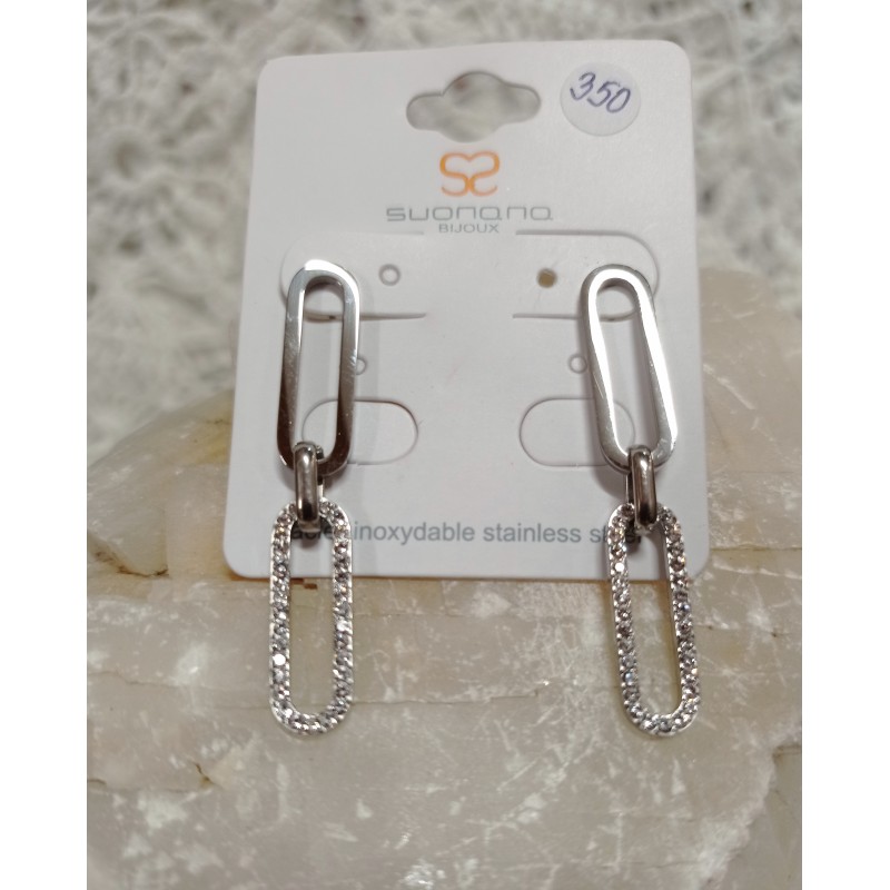 Náušnice v délce 4,3 cm na puzetku s kovovým motýlkem. Spodní část je osázena drobným kamínky a je pohyblivá. Velice zajímavé a nadčasové náušnice.